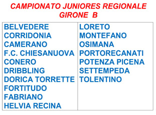 USCITI I GIRONI DEL CAMPIONATO JUNIORES REGIONALE.CLICCANDO IL BOTTONE LATERALE,
