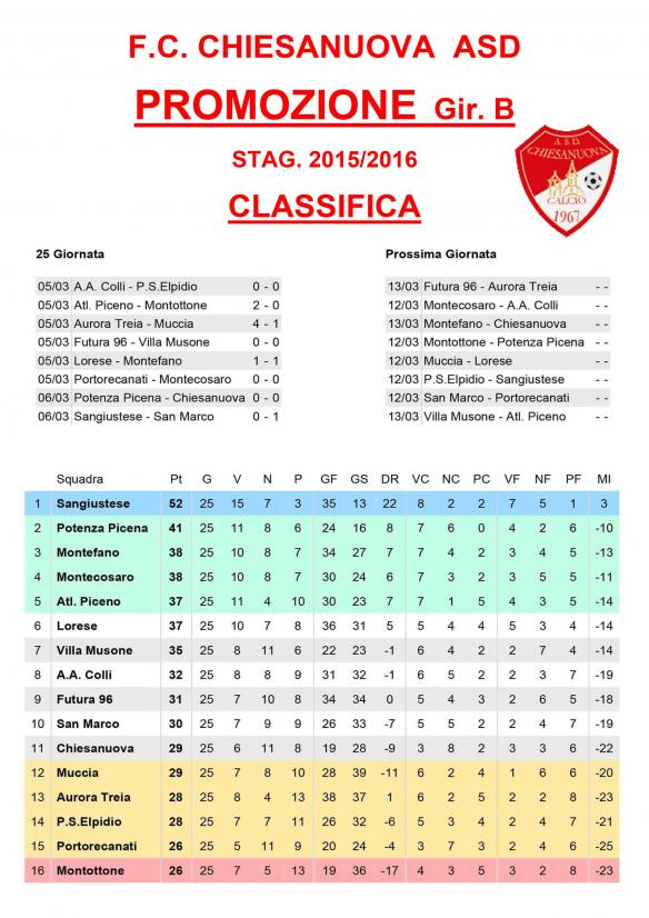 CU.150 Cassifica PROMOZIONE