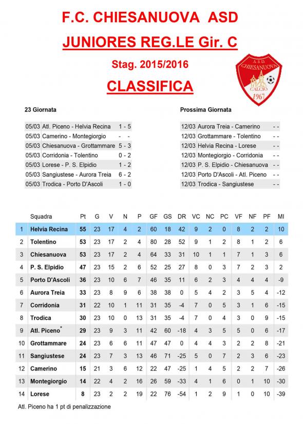 CU.226 JUNIORES Aggiornamento Risultati e Classifica ..