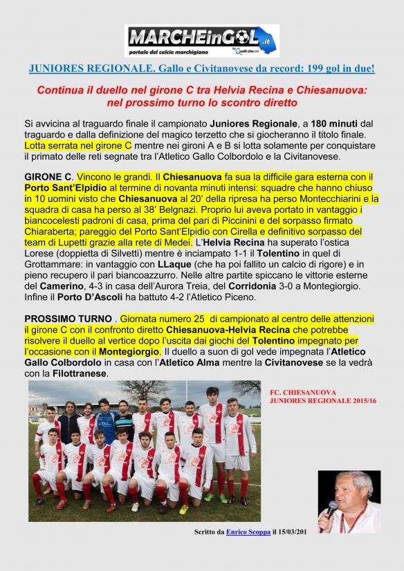 CU.226 JUNIORES Aggiornamento Risultati e Classifica ..
