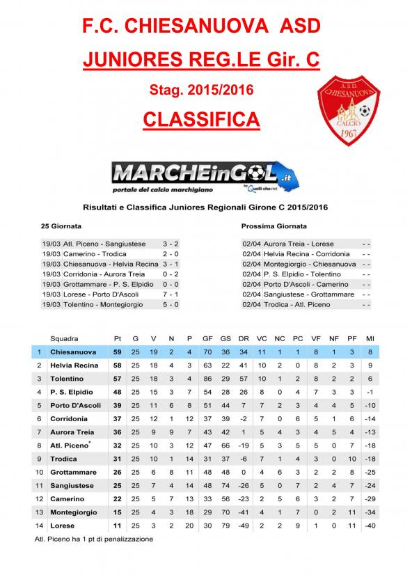 CU.226 JUNIORES Aggiornamento Risultati e Classifica ..