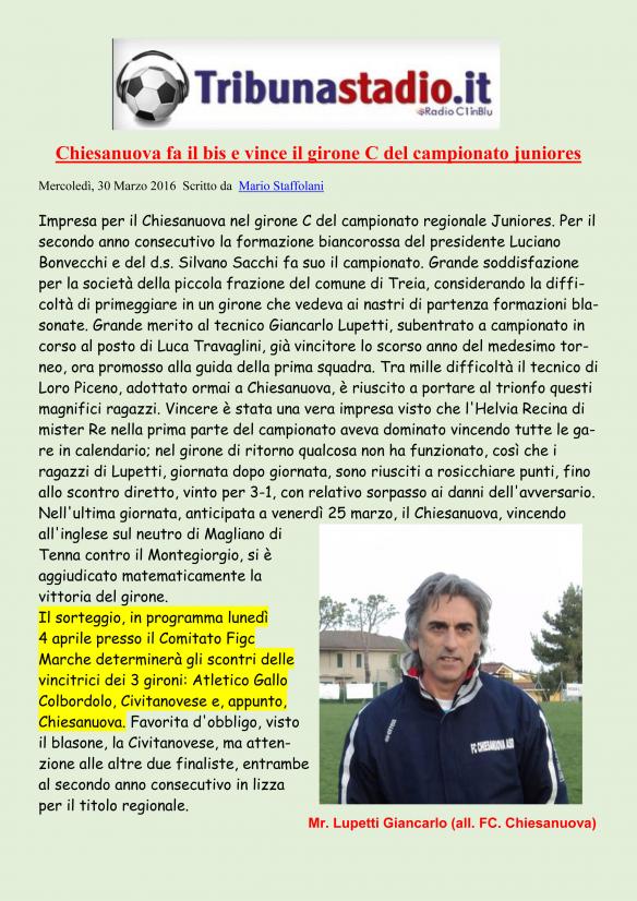 CU.177 JUNIORES Il Chiesanuova fa bis