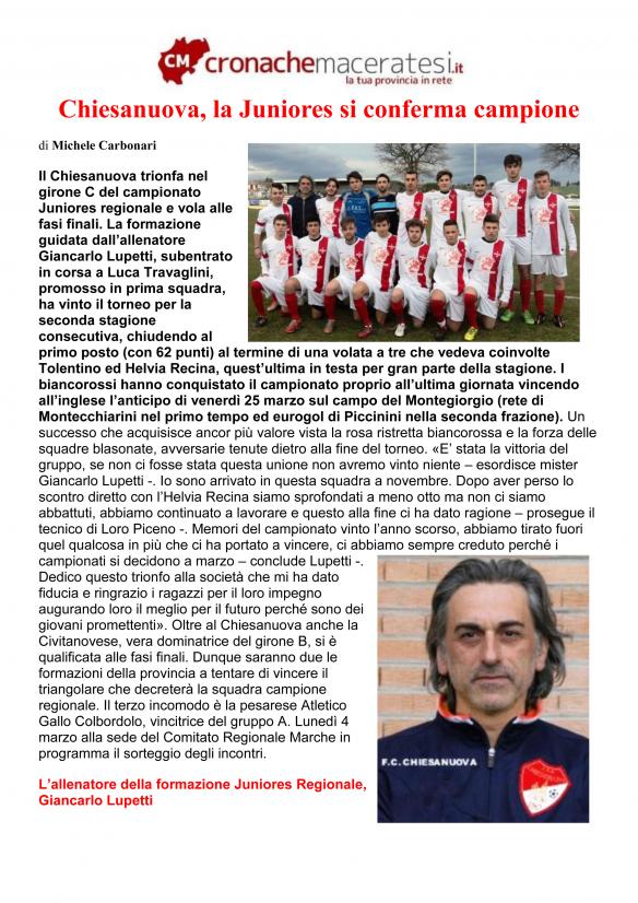 CU.178 JUNIORES Chiesanuova si conferma Campione