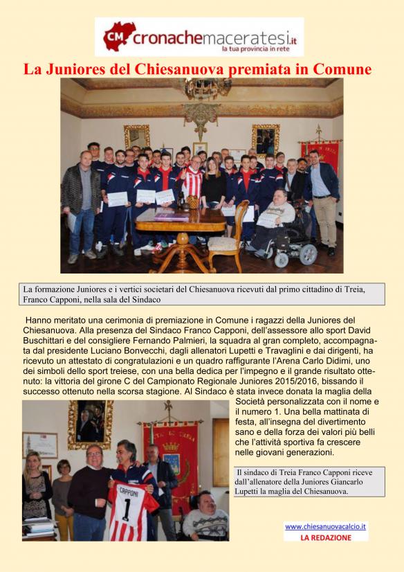 CU.188 LA JUNIORES PREMIATA DAL SINDACO