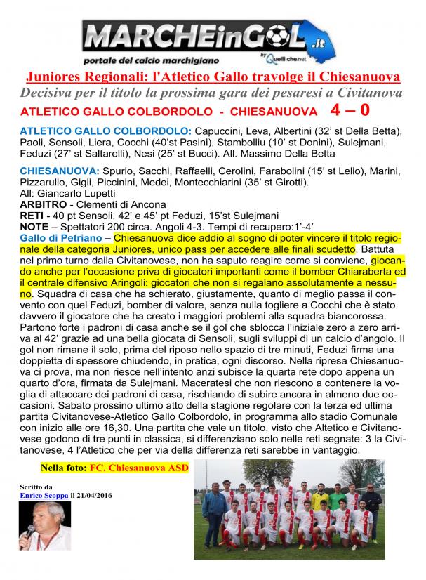 CU.198 JUNIORES: A.G. COLBORDOLO - CHIESANUOVA