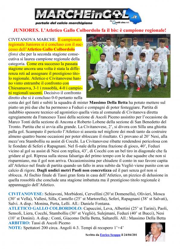 CU.203 JUNIORES: A.G. COLBORDOLO CAMPIONE REGIONALE