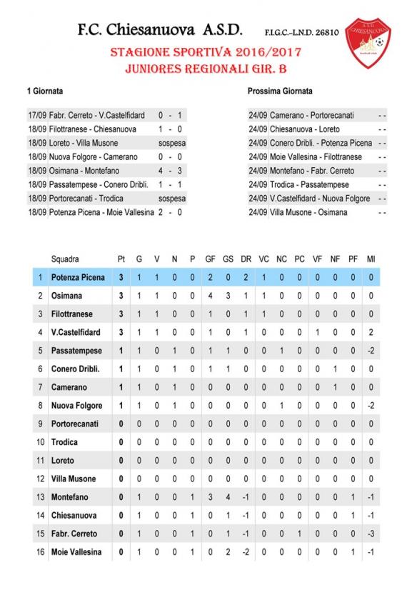 CU.226 JUNIORES Aggiornamento Risultati e Classifica ..