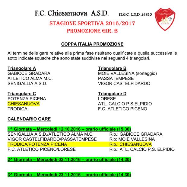 CU.41 COPPA ITALIA PROM: Calendari 2^ Fase