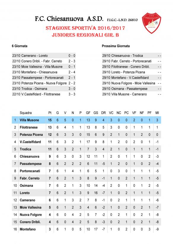 CU.226 JUNIORES Aggiornamento Risultati e Classifica ..