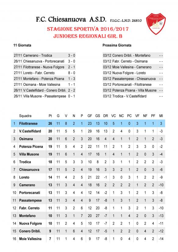 CU.226 JUNIORES Aggiornamento Risultati e Classifica ..