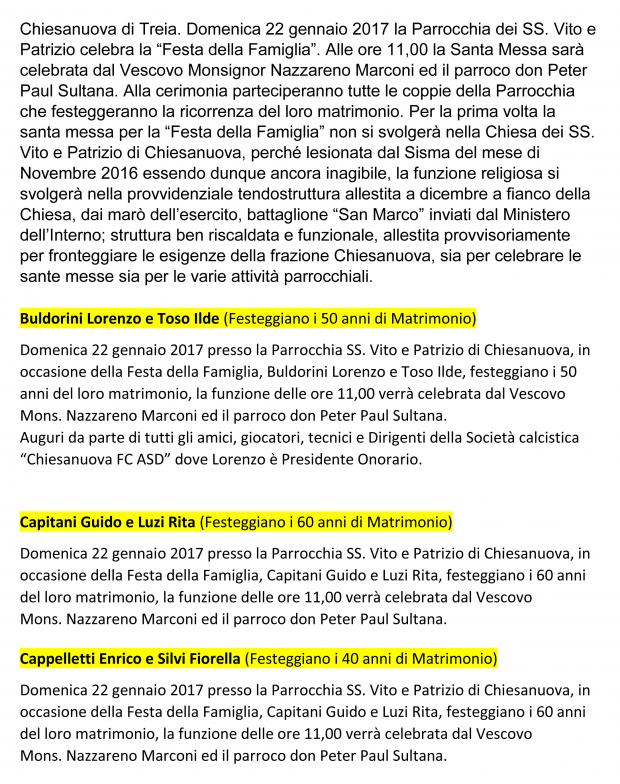 CU.134 Domani FESTA DELLA FAMIGLIA Vedi Foto e Articolo