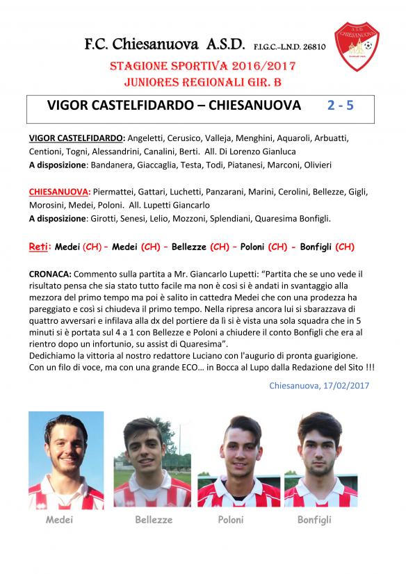 CU.154 JUNIORES REGIONALI: Castelfidardo - Chiesanuova