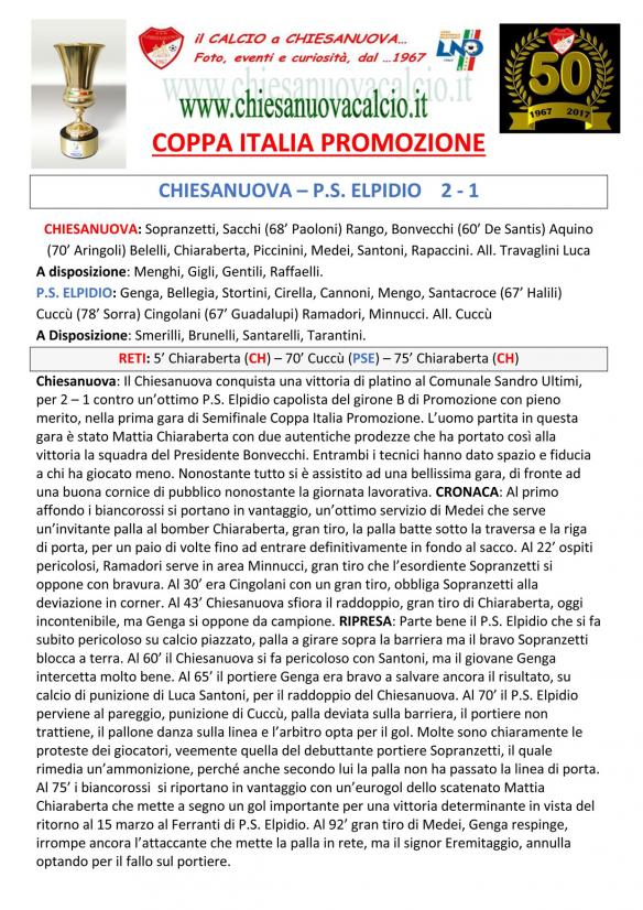 CU.165 SEMIFINALE di COPPA ITALIA PROMOZIONE