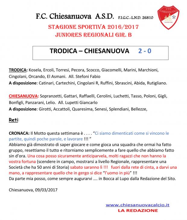 CU.169 JUNIORES REGIONALI: Trodica - Chiesanuova
