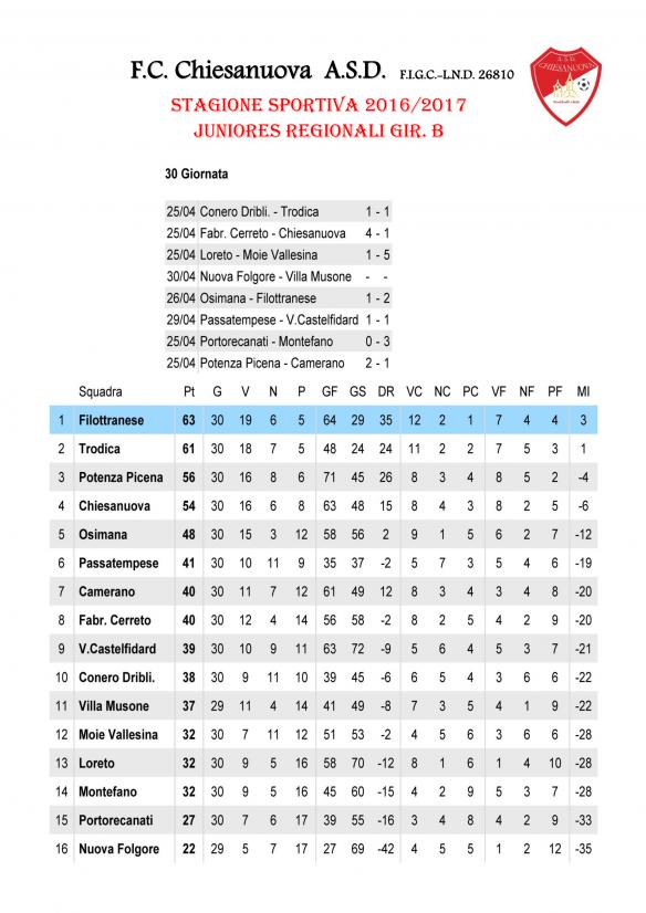 CU.226 JUNIORES REG.LI Risultati - Classifica e MARCATORI