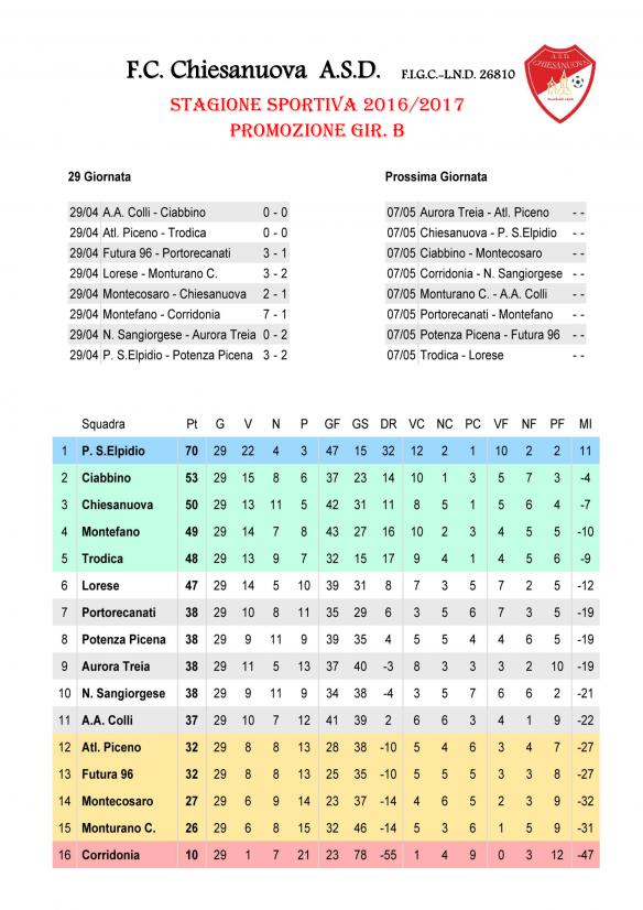 CU.228 PROMOZIONE: Risultati e Classifica