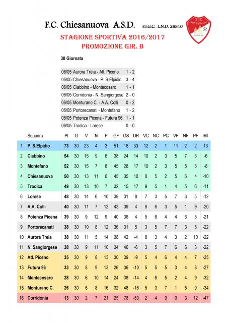 Class. CAMPIONATO PROMOZIONE REGIONALE