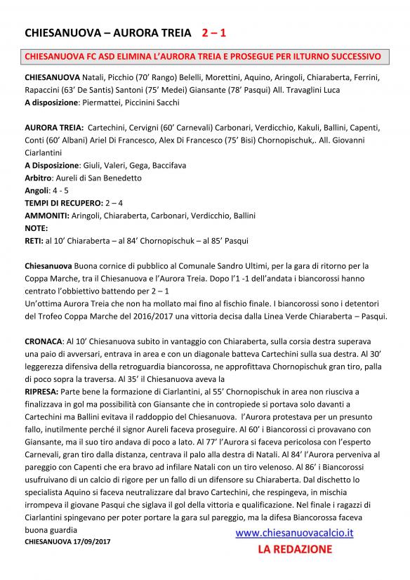 CU.18 CHIESANUOVA ELIMINA L'AURORA TREIA DALLA COPPA