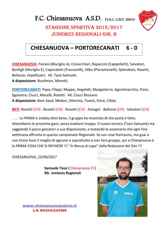 CU.21 JUNIORES REG.LI: Chiesanuova - Portorecanati