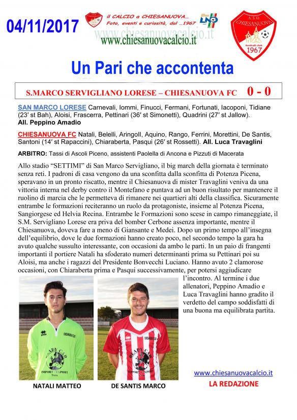 CU.40 PROMOZIONE: S.Marco Servigl. Lorese - Chiesanuova FC