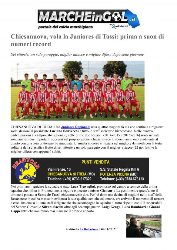 CU.43 JUNIORES REG.LI: da MarcheinGol