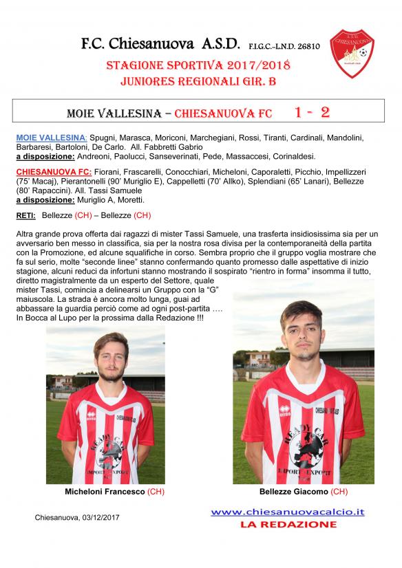 CU.57 JUNIORES REGIONALI: Moie Vallesina - Chiesanuova