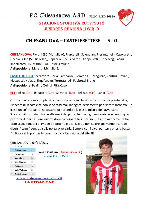 CU.61 JUNIORES REGIONALI: Chiesanuova - Castelfrettese