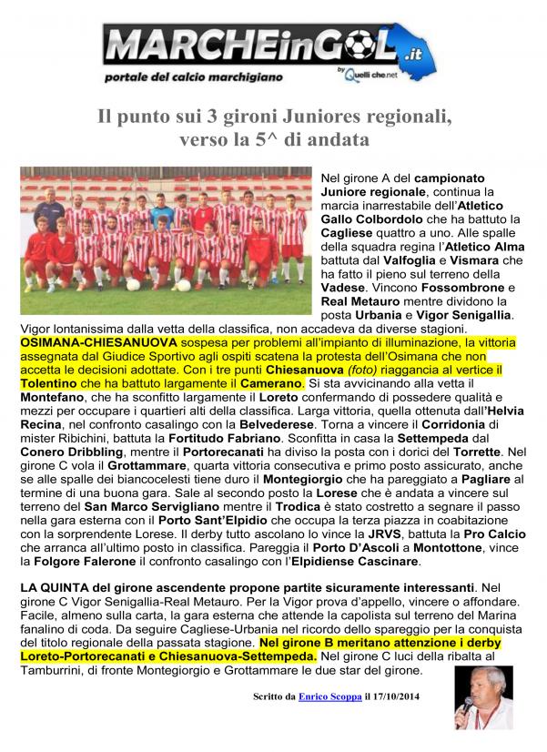 CU. 65 JUNIORES il Punto di E.Scoppa
