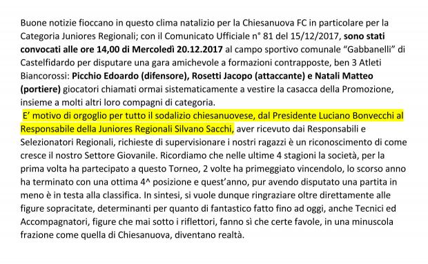 CU.64 CONVOCAZIONI JUNIORES REGIONALI