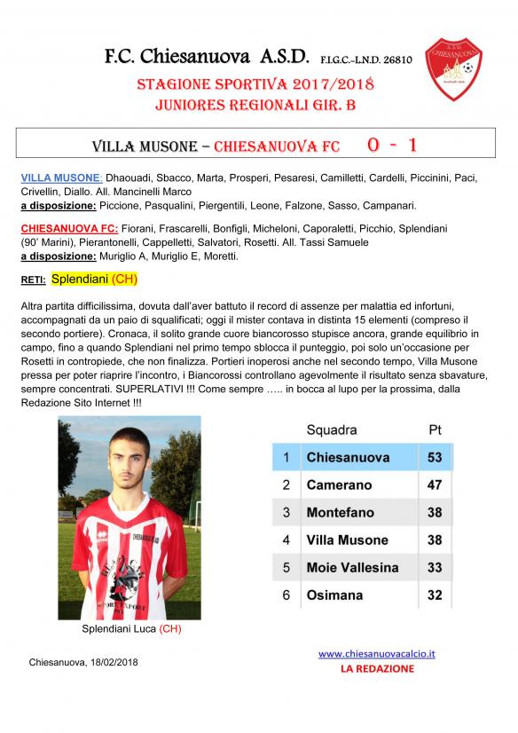 CU.90 JUNIORES REGIONALI: Villa Musone - Chiesanuova