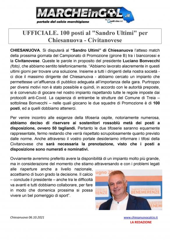 CU.27 Prom CHIESANUOVA FC-CIVITANOVESE 100 posti a sedere .....