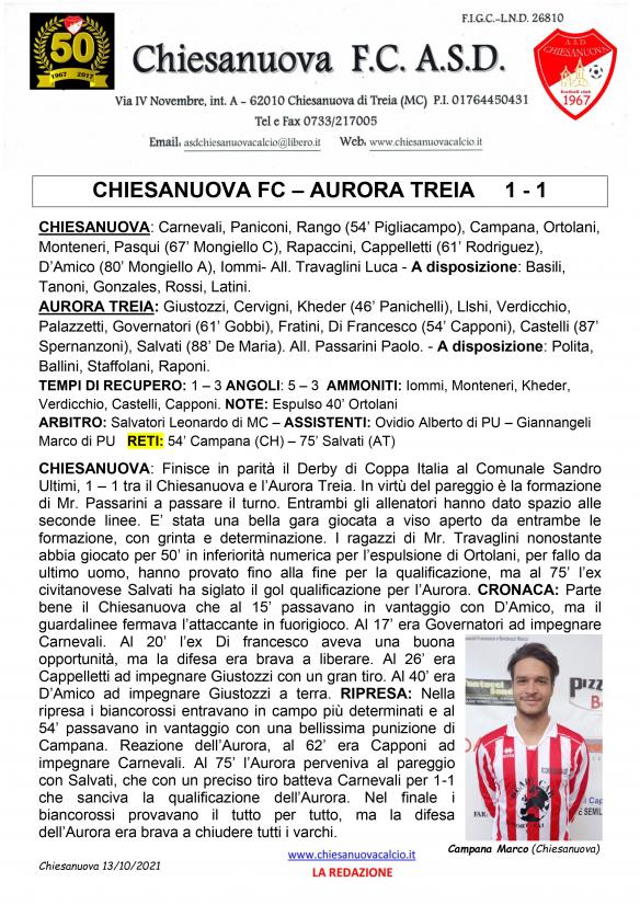 CU.34 CI. Chiesanuova FC - Aurora Treia